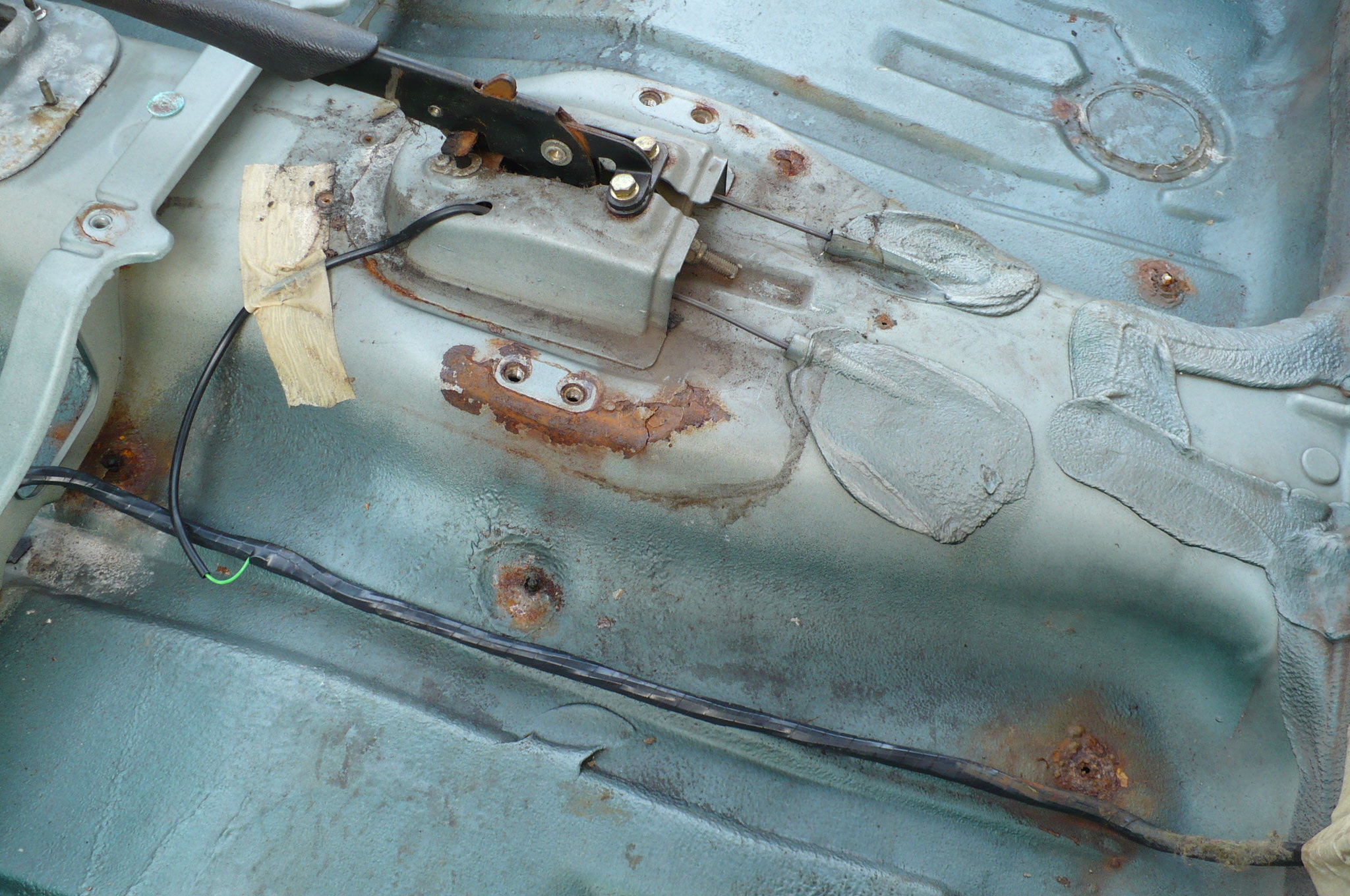 Bez większych perturbacji odkręciłem fotele, zdjąłem wykładzinę i wygłuszenie podłogi. Tak jak podejrzewałem pod większością mata wygłuszająca nasiąknięta była wodą. Według mnie woda dostawała się przez nieszczelności spowodowane skurczonymi uszczelkami tylnych szyb. ??????