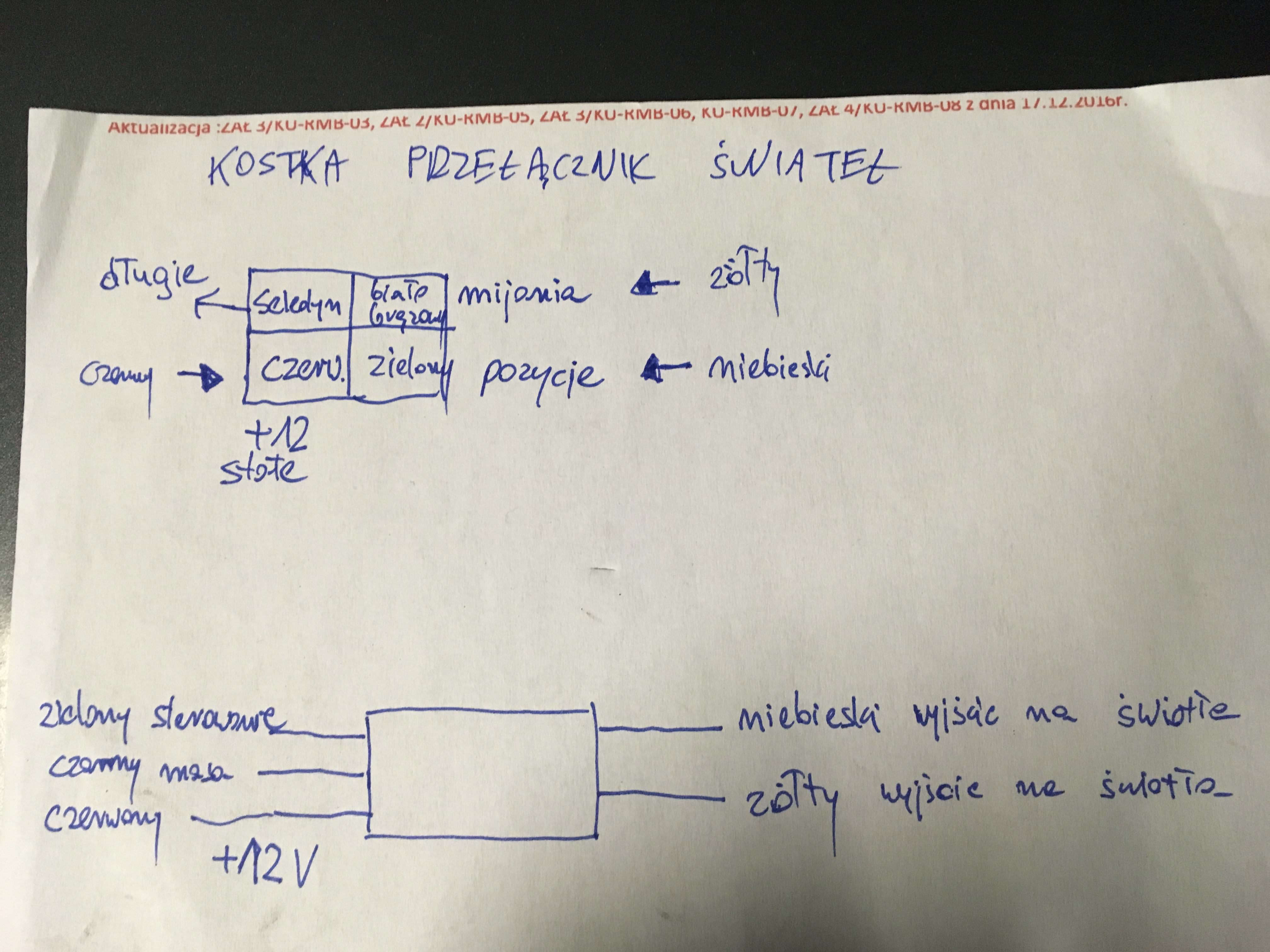 - zielony to światła pozycyjne po przełaczniku - podłaczamy przewód wyjściowy z automatu świateł