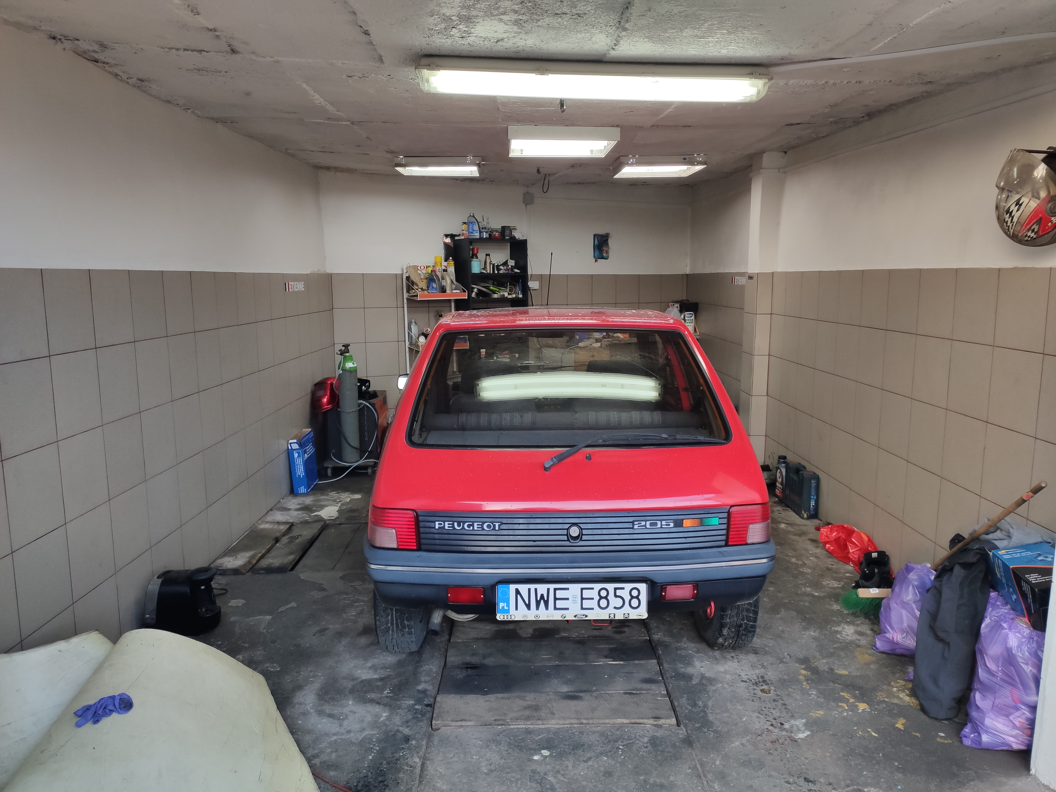 Treść ogłoszenia nie zachęcała. Trzy zdjęcia, tym bardziej zniechęcały. Zadzwoniłem tylko dlatego, że miał naklejki z prawej strony. Oczywiście lewego boku nie było na zdjęciach. Trudno zadzwonię spytam. Okazało się, że auto sprzedaje pani która o mechanice wiedziała tyle samo co ja kosmetykach. Na dodatek odziedziczyła go w spadku. Jednak była na tyle uprzejma, że zrobiła mi dużo zdjęć newralgicznych miejsc dla każdej 205-tki. Wyglądało to na tyle dobrze, że umówiłem się na kolejny dnień celem oględzin.