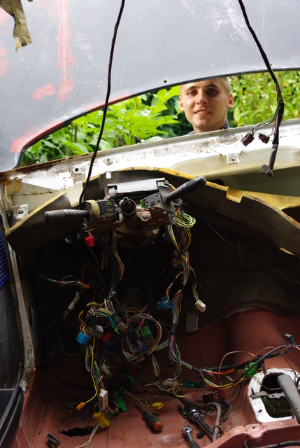 Po kolei auto traciło części z wewnątrz ,które lądowały w skrzynkach w garażu, aż ułożone jedne na drugie dotykały sufitu.