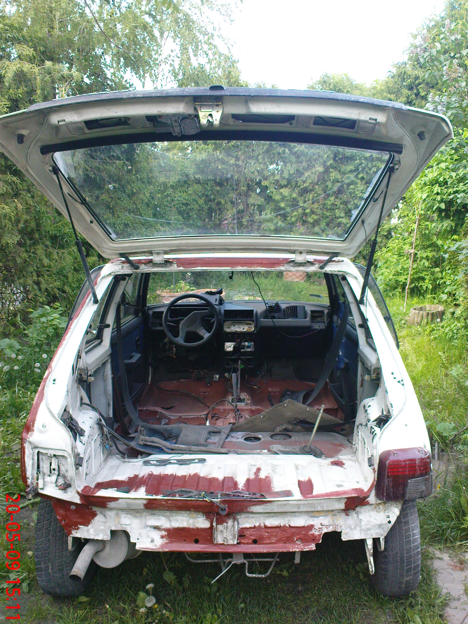 Mineło ponad 20 dni i duzo nie przespanych nocy na forach lakierniczych gdy po raz pierwszy buda została zapodkładowana i to pistoletem za 30zł i kompresorem 24Litry !!! w dodatku pożyczonym od kolegi mieszkającego w tej samej miejscowości .Trochę skromny ekwipunek lakiernika