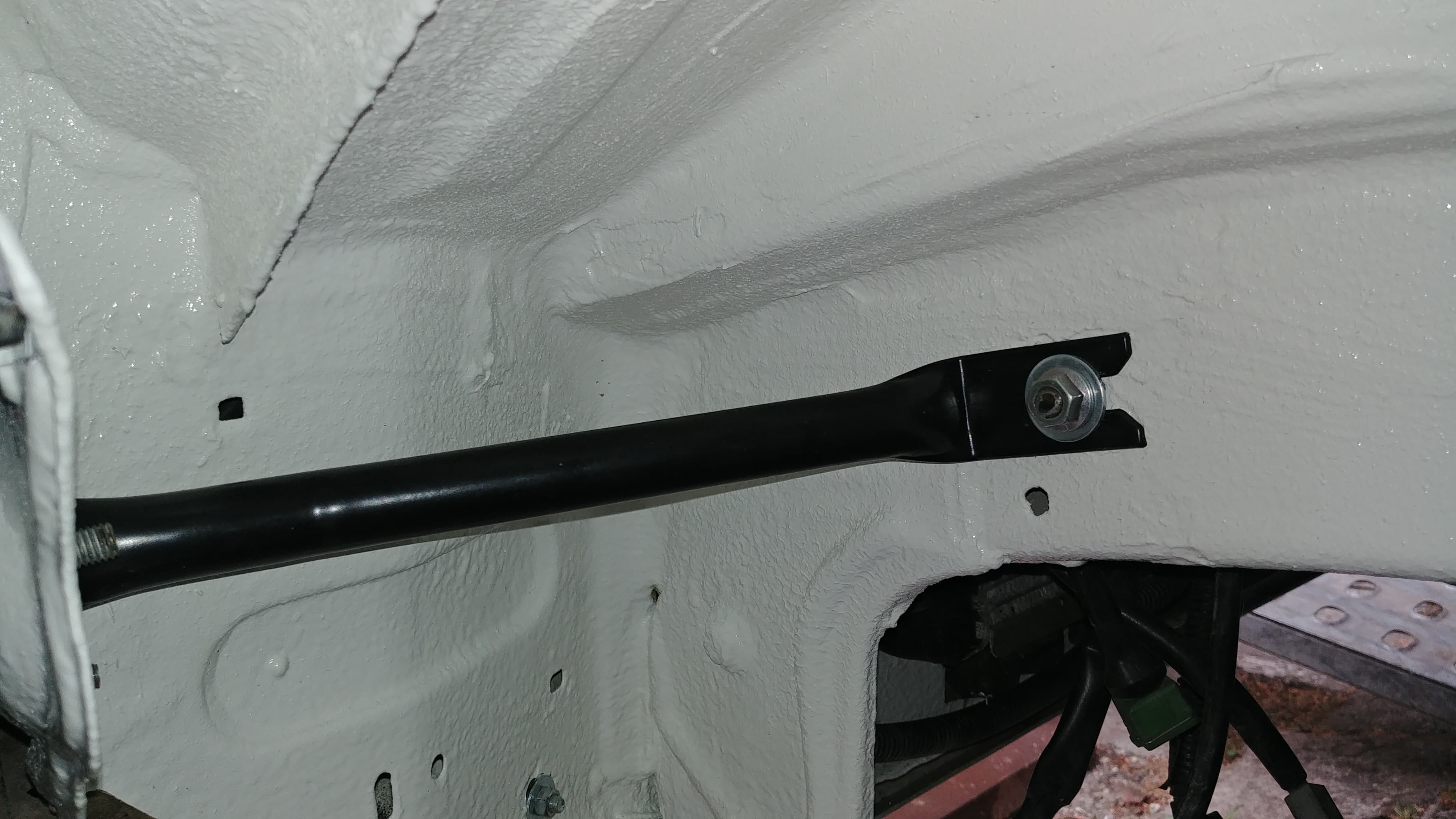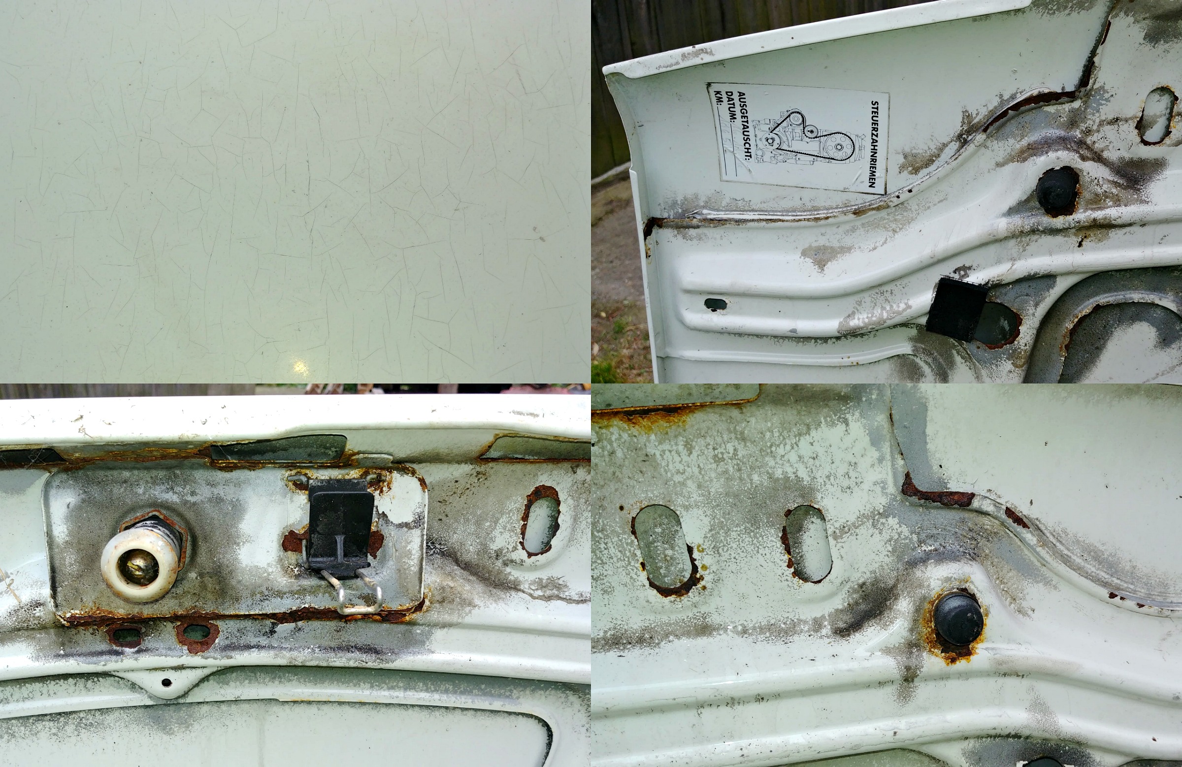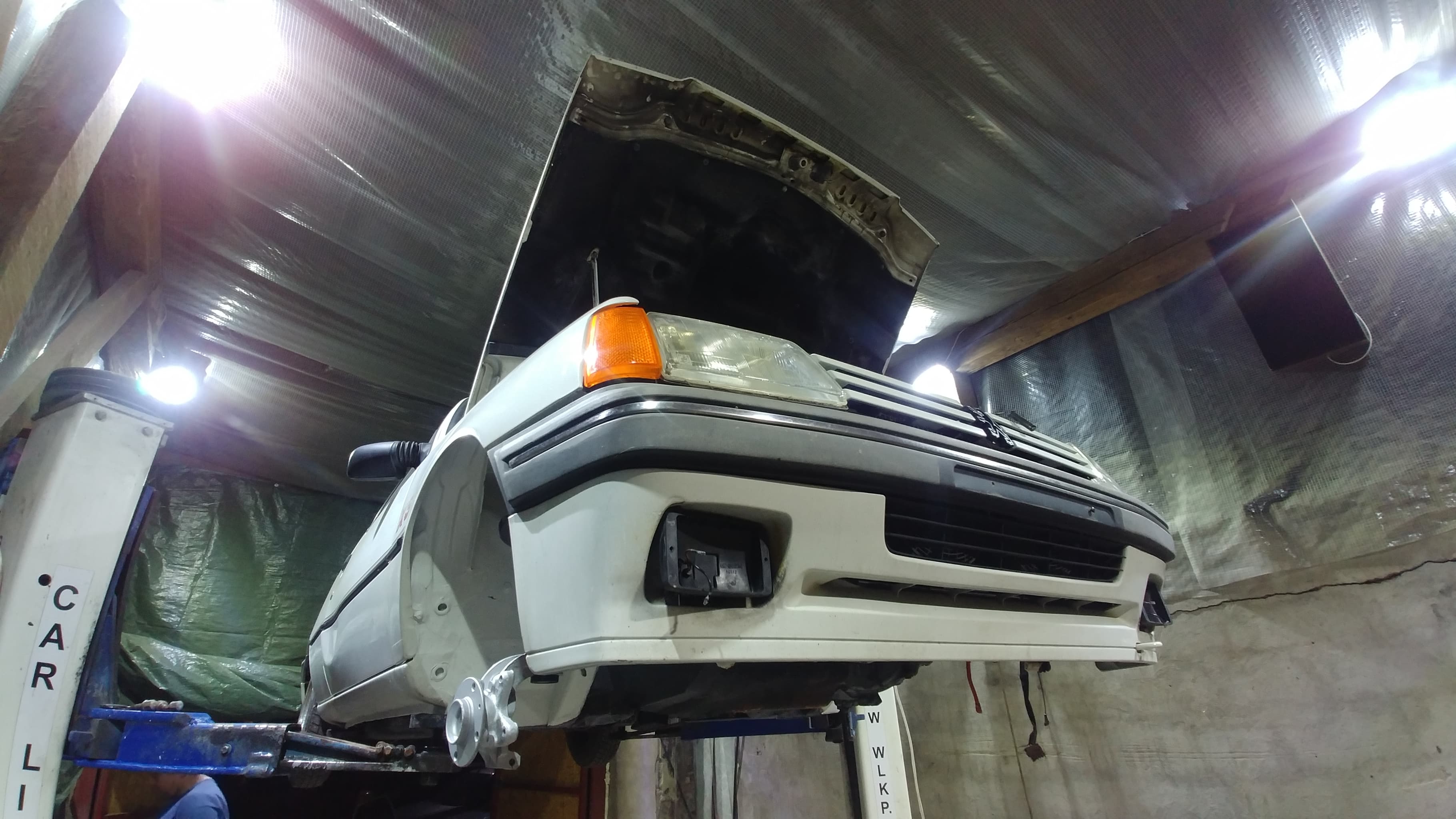 Po paru dokładnych myciach, usunięciu smarów, nagarów i tymczasowej konserwacji z kitu pszczelego, auto pojechało do blacharza na zrobienie porządków. Będzie malowana komora, mam nadzieję że częściowo, przy okazji chciałbym profilaktycznie zrobić podłogę bagażnika i przestrzeń pod zbiornikiem paliwa.