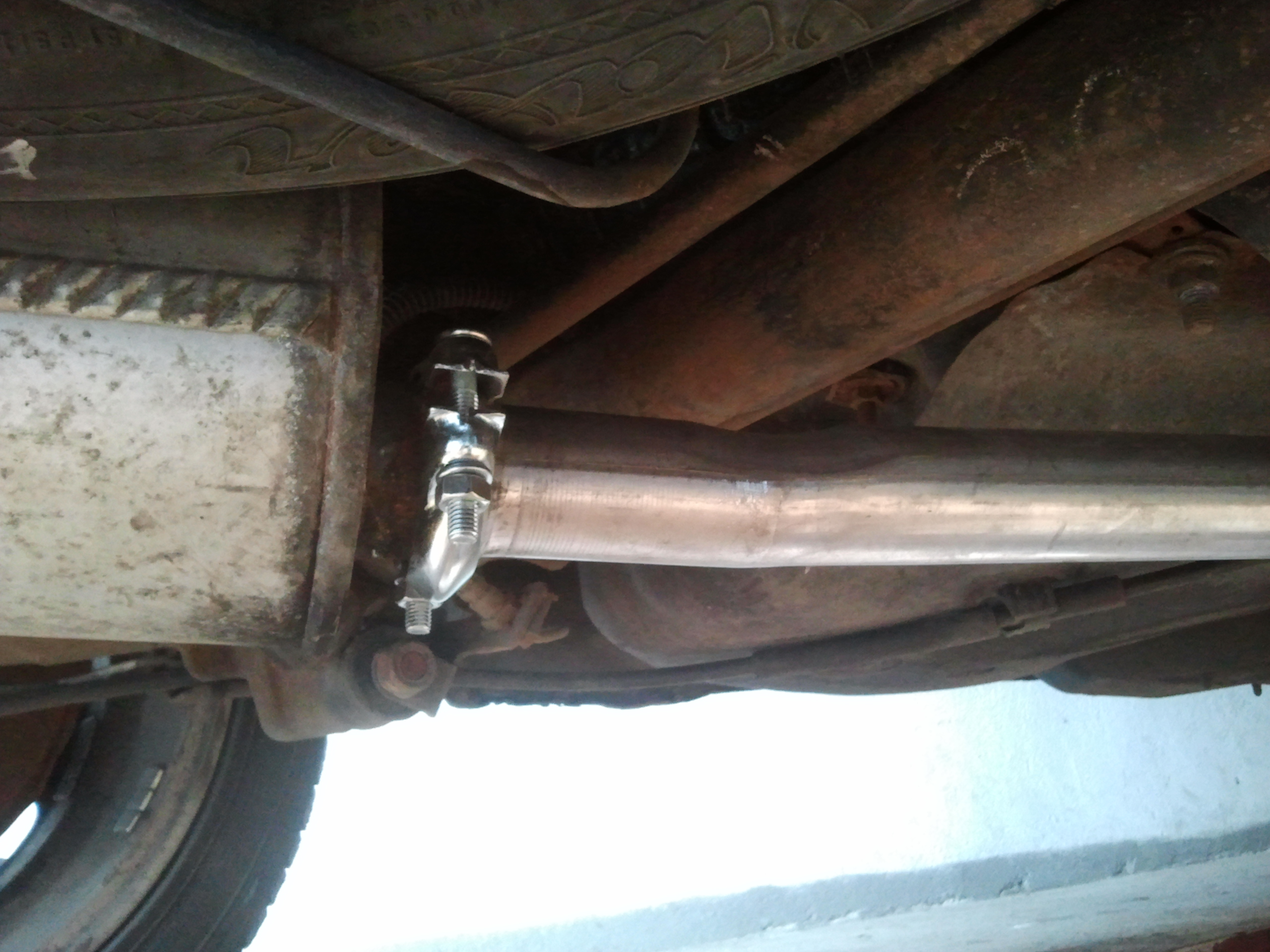 Przy okazji prac na halogenami koniecznym stała się wymiana rury wydechowej pomiędzy katem a tłumikiem końcowym. Przerdzewiała podstępnie od góry i odpadała