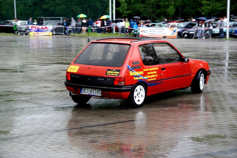 po długiej przerwie, moje 205 już a może dopiero jest w stanie używalności, walka z ubezpieczycielami dobiegła ku końcu, efekt zadowalający. W minioną sobotę tj.31.05.2014 w naszych rejonach odbył się tzw. Kręciołek samochodowy o puchar dyrektora ZST, fajna impreza, typowa zręcznościówka, w której oczywiście pojawiliśmy się na starcie. Tym razem na prawy fotelu zasiadła żona Marka, Ola :) Podział klas był dosyć prosty, do 903 cm i powyżej 903 cm. Po pierwszym przejeździe okazało się ze można powalczyć na tym małym placu z dużo mocniejszymi samochodami :)