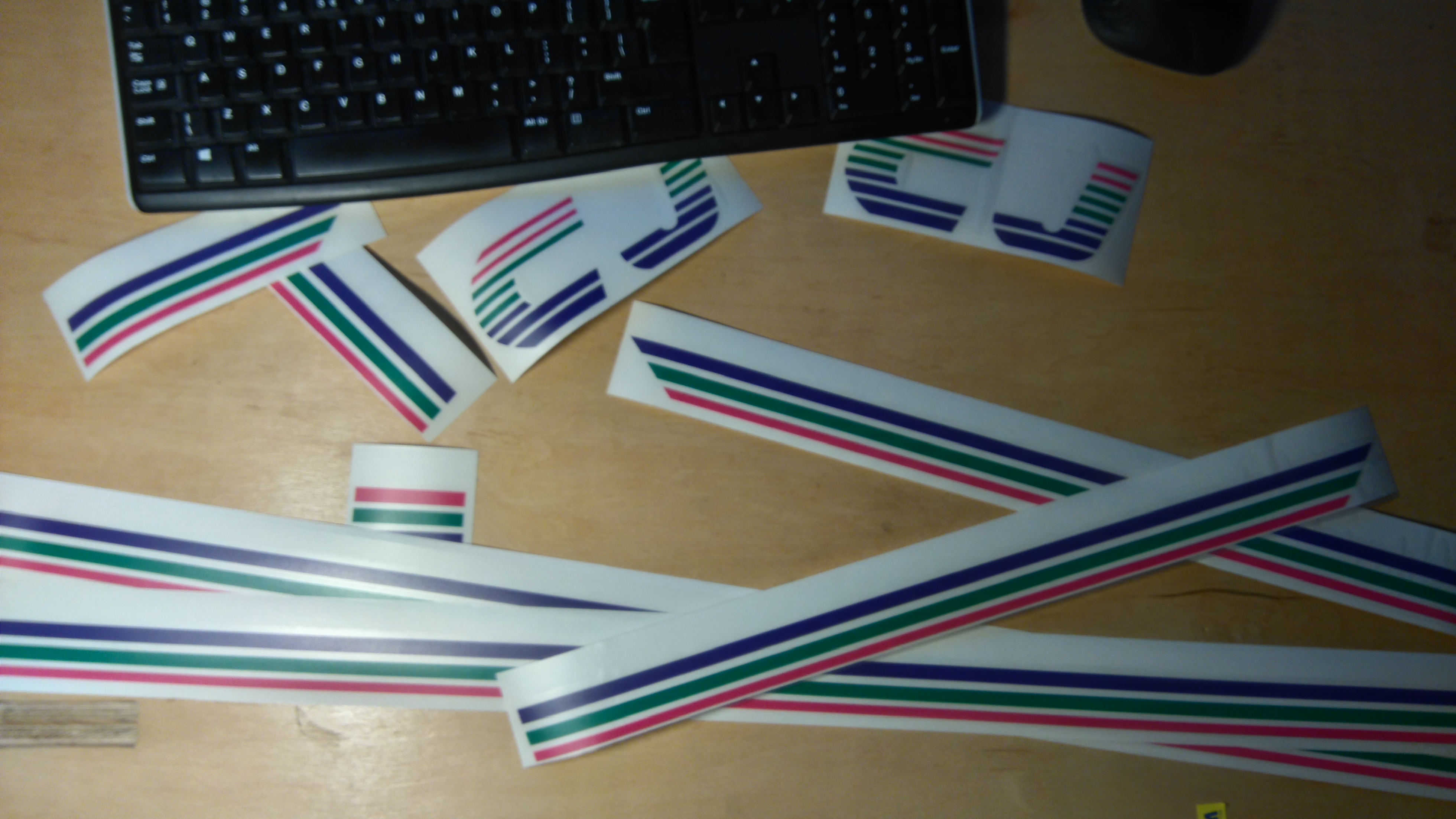 - Nie mogłem się doprosić o naklejki, to zrobiłem je sam. Są na tyle dokładne, na ile przerysowanie na papierze śniadaniowym i zebranie wymiarów linijką z grześkowego CJa pozwala. Jeśli chodzi o kolory, wątpie, że się wstrzeliłem w oryginalny odcień, ale who cares. Jak ktoś chce projekt, udostępnię na priv, co by nie kusiło jakieś rekina biznesu sprzedawać je na ebayu za dolary USA.