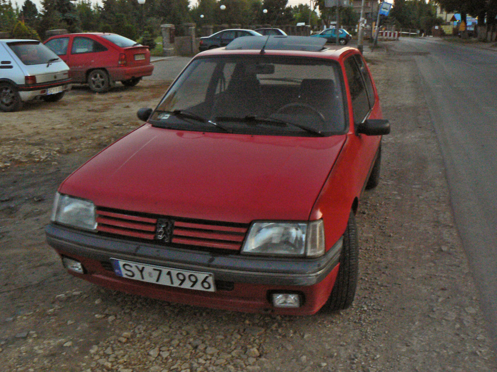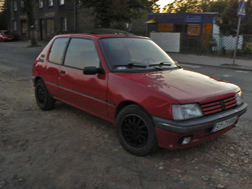 Jak już wcześniej pisał mój kolega osmolov udało mi się zakupić P205 xs, i tym samym uratować go od podróży do huty. Jest to samochodzik z 1992r s silnikiem 1.6 o mocy 65kW czyli ok 90 KM. Nie jest w rewelacyjnym stanie. Wizualnie przydało by się odświeżyć lakier gdyż czas i stanie na dworze zrobiło swoje, blacha jest ok, małe ognisko rdzy na progu, zbity klosz z kierunkowskazu, brak jednego halogenu oraz rozbita lampa stopu. Mechanicznie auto nie sprawne. W tym momencie stoi u znajomego mechanika. Do wymiany pompa wody (ciekło z niej jak z kranu przez co się strasznie grzał), pasek rozrządu wraz z napinaczem, nowe gumy i smar na przeguby, coś się dzieje z elektryka, albo aku jest padnięty albo gdzieś ucieka prąd, końcówki układu kierowniczego do wymiany, hamulce w bardzo złym stanie, odpowietrzniku ukręcone.. Środek auta zapuszczony i śmierdzący, zamówiłem odkurzacz piorący i będę go odsmradzał. Gałka biegów sportowa ale zepsuta, kierownica z GTi, fotele kubełkowe, trochę potargane. W prezencie od wujka dostałem nowe halogeny Wesem, kierunkowskaz, gałkę zmiany biegów, i lampę tylną wiec już na dniach wymienię te elementy. Mam także do tego autka amortyzatory które dostałem jako gratis do auta. Autko jest w gazie co mnie cieszy gdyż jest to dużo tańsze jeżdżenie, posiada elektrycznie podnoszone szyby, wspomaganie kierownicy, centralny zamek (nie zawsze działa).