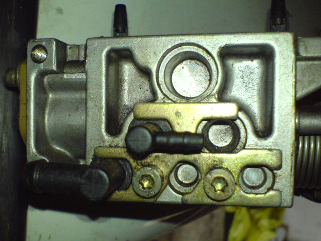 Na dole powinno być podłączone podciśnienie idące od strony silnika. Na górze nic. Z boku natomiast wężyk idący do podciśnieniowego przyspieszacza zapłonu (aka UFO). Ponieważ dosyć dawno nie zaglądałem do silnika z tym elektrozaworem to nie pamiętam skąd idzie to dolne podciśnienie.