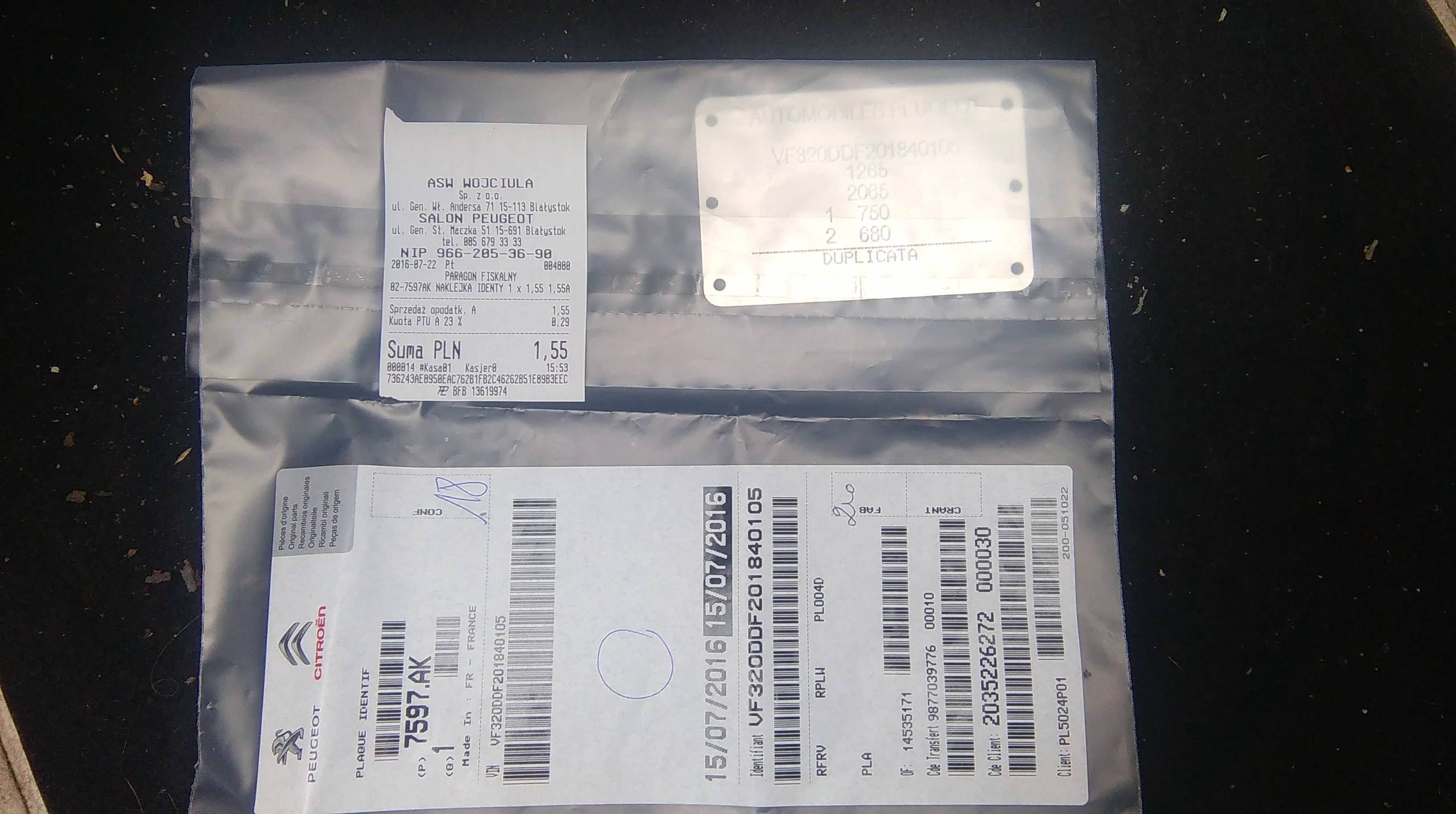 Nowy duplikat zaginionej tabliczki znamionowej jest już zamontowany na swoim miejscu. Kosztował fortunę w ASO.