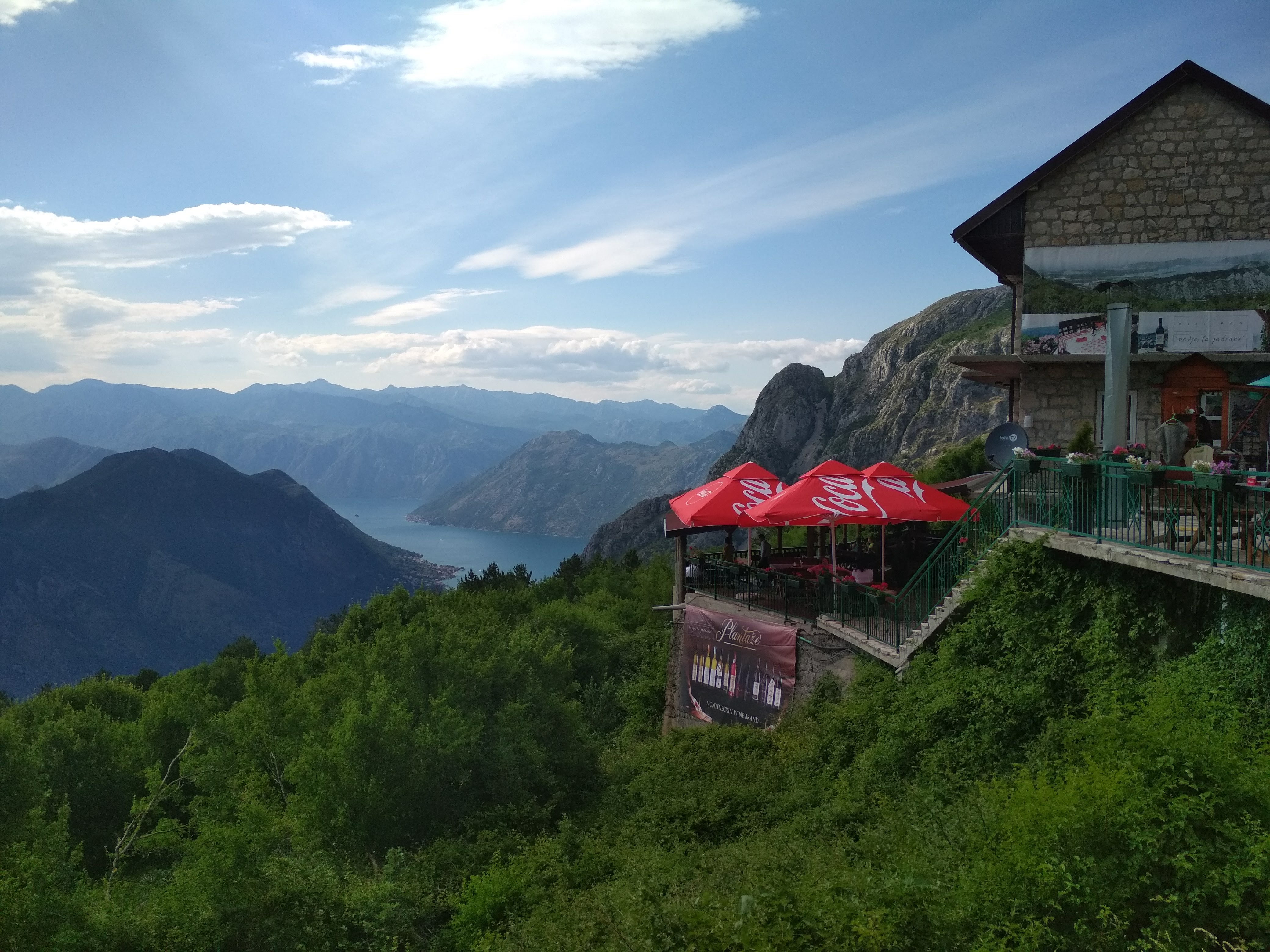 Donji Stoliv - Serpentyny Kotorskie - Lovcen - Veslo ok.130km Naszym dzisiejszym celem jest Narodowy Park Lovcen, do którego z zatoki Kotorskiej prowadzi taka droga Dla ostudzenia emocji po takiej "spirali" można zasiąść przy kawie w takiej oto kawiarni Chętni do ponownego przejazdu serpentynami mogą w tym czasie "korzystać do woli" aż do kompletnego upalenia sprzęgieł i klocków oraz ugotowania silnika