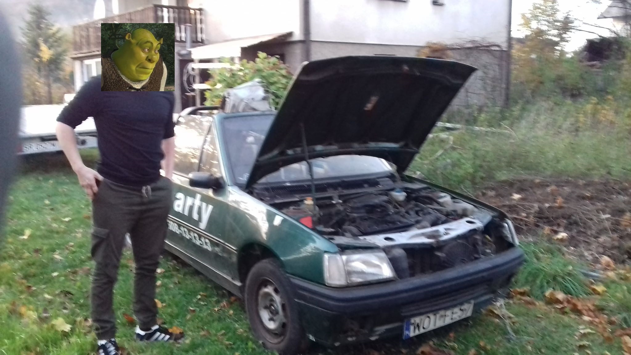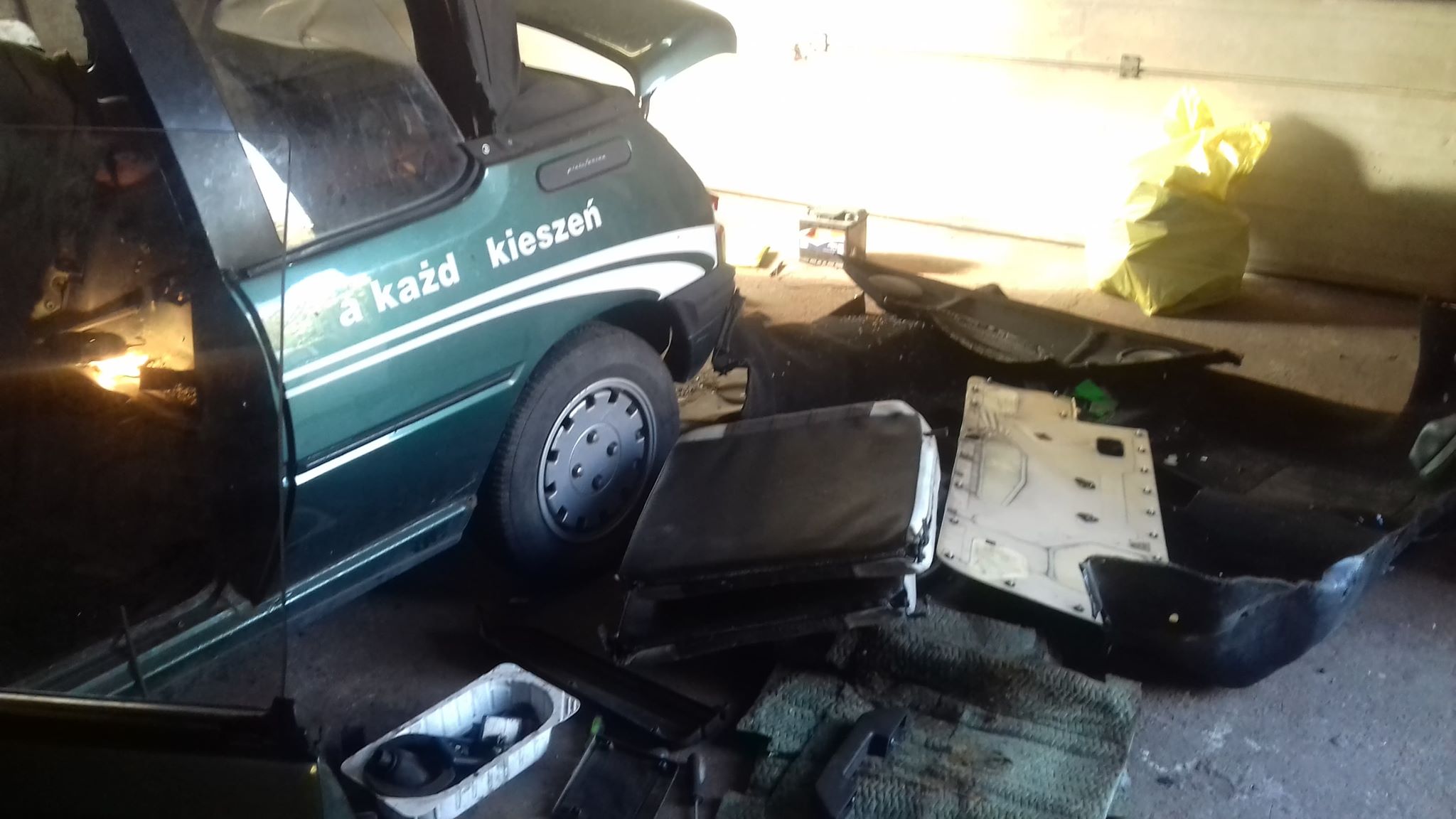 Kolejny gruz, tym razem bez lawety się nie obyło. Historia samochodu jest dosyć ciekawa, bo to Garros z hakiem oklejony numerami pana z Otwocka handlującego sprzętem do nart. Jeśli chodzi o stronę mechaniczną, to jako tako było dbane, po czym przekazał zielonego swojemu siostrzeńcowi, który rozszabrował autko z foteli i kierownicy.